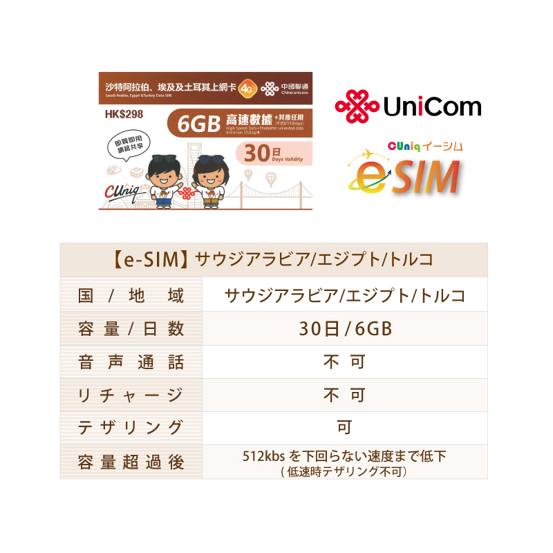 【サウジアラビア/エジプト/トルコで30日間(6GB)データ通信が出来るe-SIM】