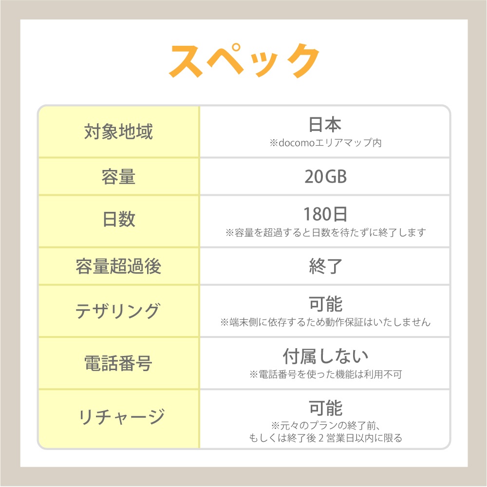 【物理SIM/ネコポスゆうパケット発送】docomoMVNO回線 データ専用 SIMカード 20GB/180日 [SIM-109]
