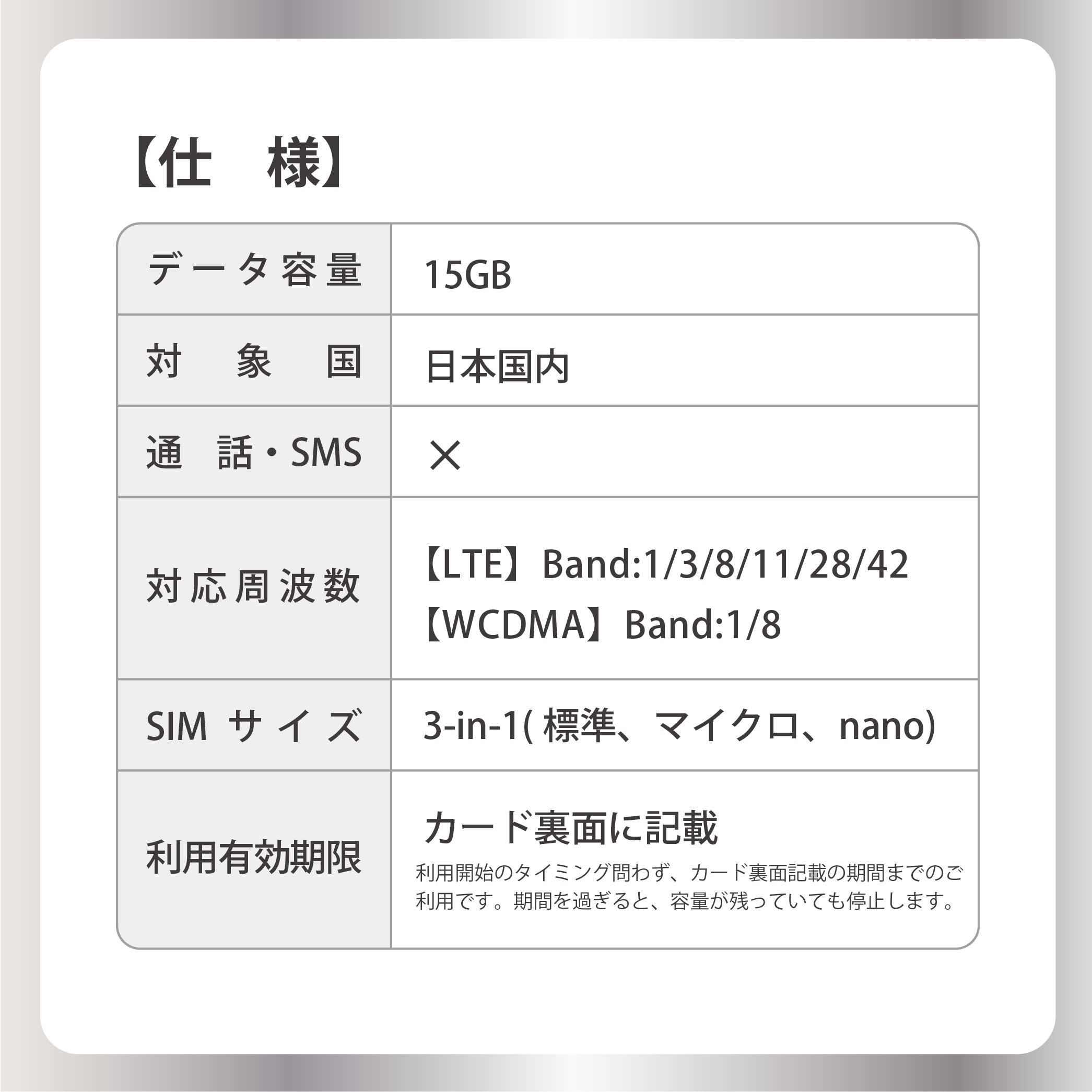 | 利用有効期限 | 2026/06/18(この期間を超過するとデータ残量があっても停止致します/カード裏面表示) |