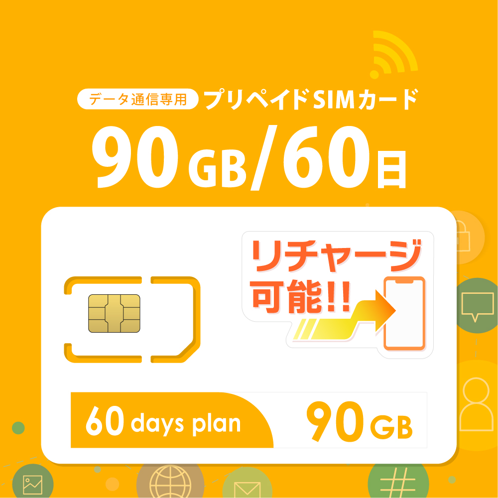 【物理SIM/ネコポスゆうパケット発送】docomoMVNO回線 データ専用 SIMカード 90GB/60日