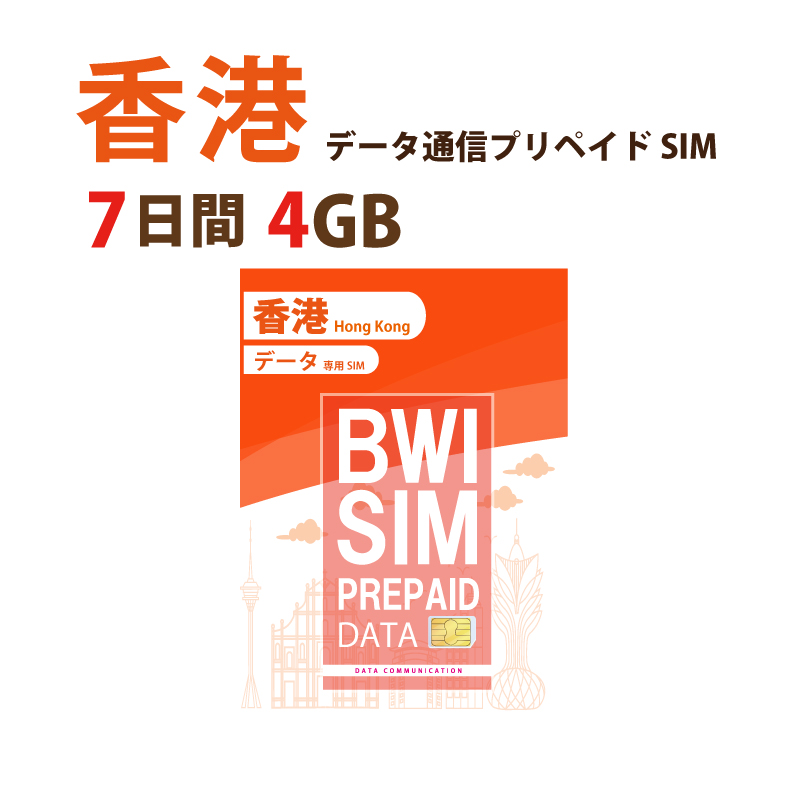 不課税【物理SIM/ネコポスゆうパケット発送】China Unicom HK回線 香港 データ通信専用 プリペイドSIMカード(4GB/7日)