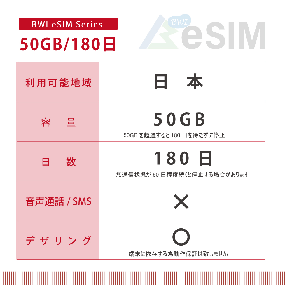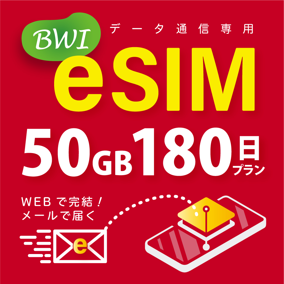 【eSIM/メール納品】docomoMVNO回線 データ専用 SIMカード 50GB/180日※※eSIMにつき5%OFF※※ [eSIM-50GB180DAY]